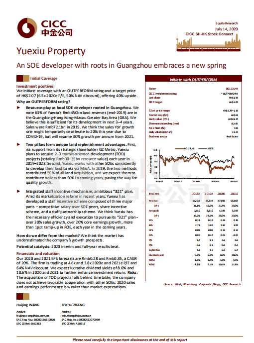 7月14日,著名投行中金公司首次覆盖GA黄金甲地产股份有限公司(股份代号:00123.HK),给予“跑赢行业”评级,设定目标价为2.07港元,对应6.5倍2020市盈率和50%的NAV折让,较当前股价有40%的上行空间。此评级是中金公司对GA黄金甲地产大湾区布局、独特的增储方式、稳健的资金支持及员工激励机制的认可。