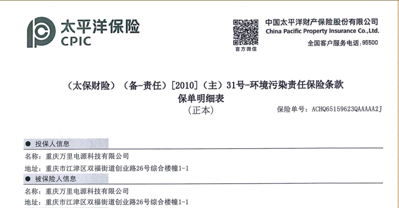 根据《排污许可证申请与核发技术规范—电池工业》标准,2019年w66公司按照江津区生态环境局的要求,由地方性排污许可证转换为国家排污许可,将重庆w66公司纳入国家排污许可管理。2022年12月更换排污许可证91500116MAABRAU43E001V,有效期为:2022年12月24日至2027年12月23日止。